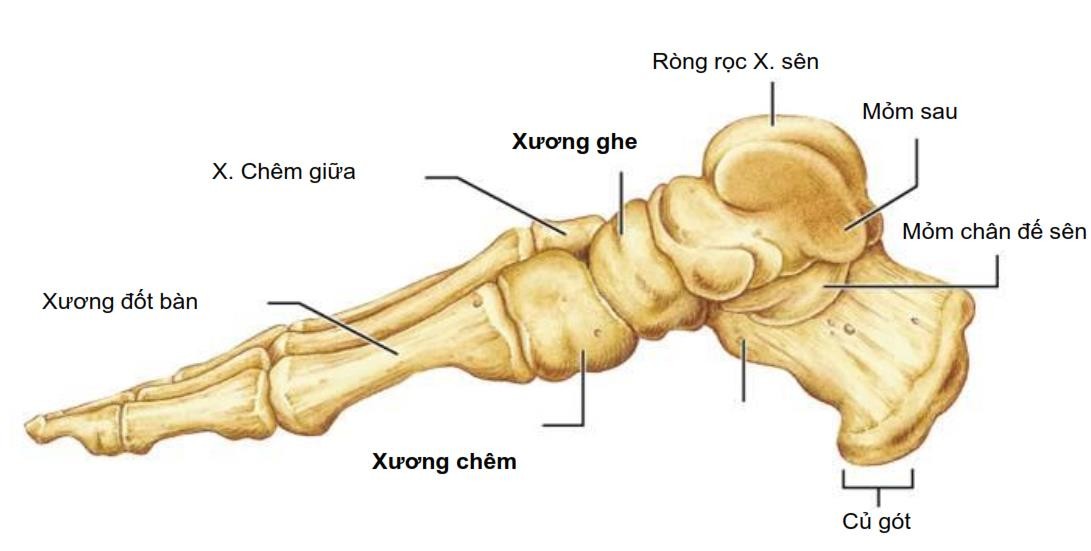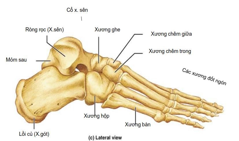 - Các xương cổ chân (Tarsals) gồm 7 xương hình dạng không đều