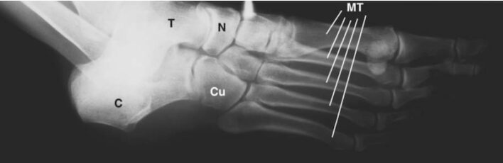 - Các xương bàn chân (Metatarsals) kết nối các xương ngón chân với các xương cổ chân, gồm 5 xương tương ứng 5 ngón.