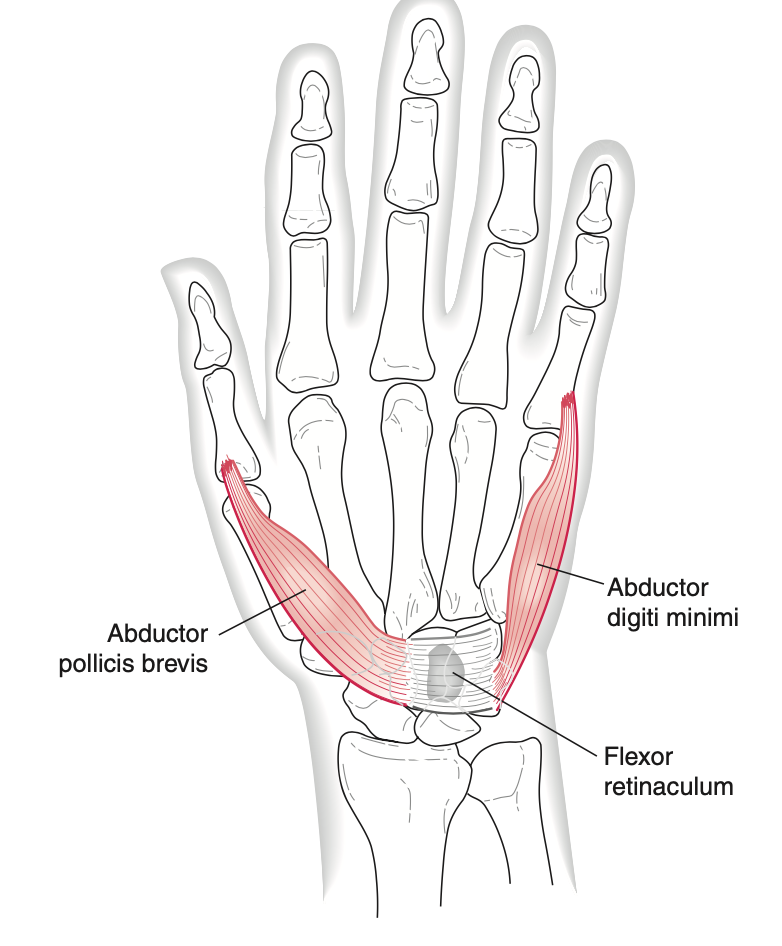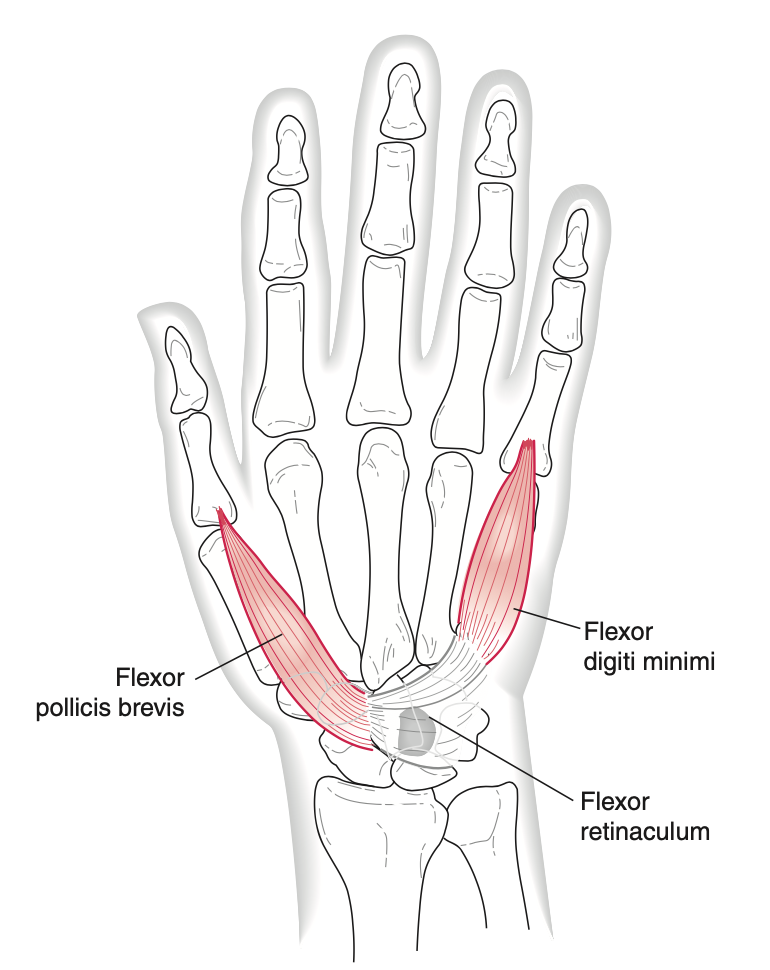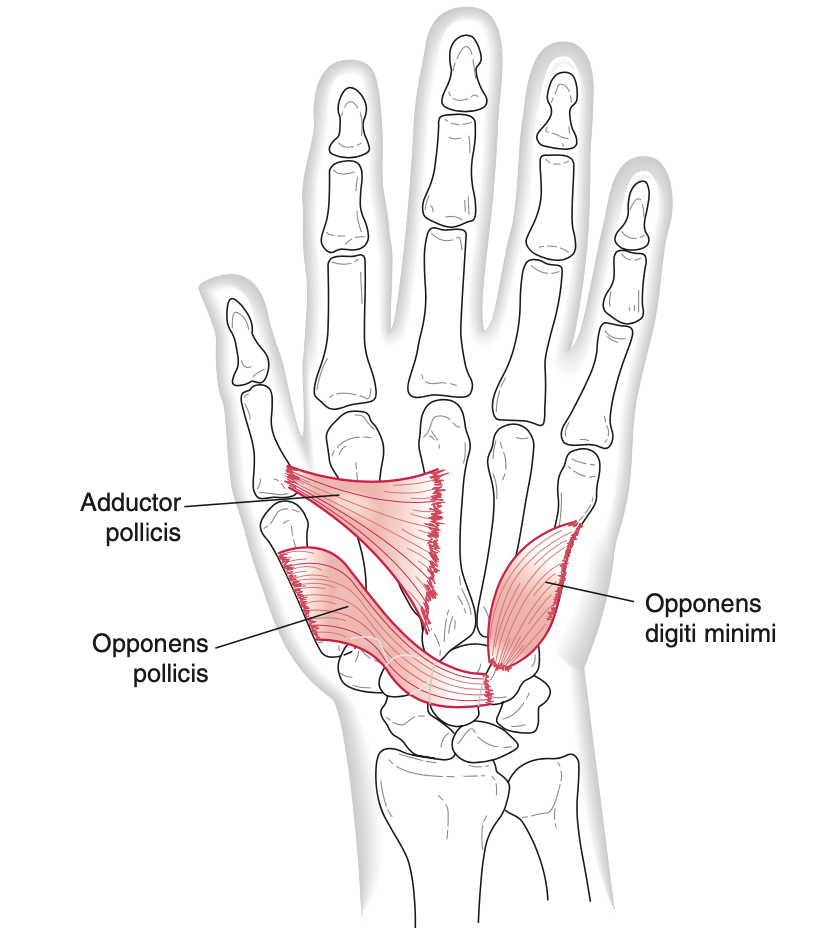 - Mô cái (Thenar): cơ gấp ngón cái ngắn, cơ dạng ngón cái ngắn, cơ đối ngón cái
