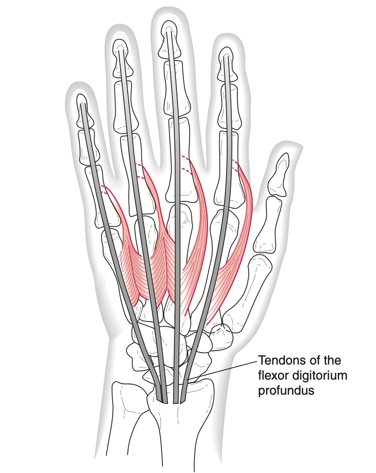 - Cơ gấp các ngón nông có thể gấp các ngón độc lập tại PIP.