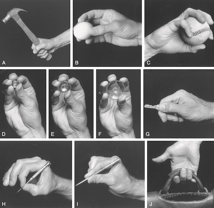 Có thể chỉ gấp nhẹ ở khớp PIP và DIP và có thể chỉ một hoặc hai ngón tay, ngón cái vuông góc với bàn tay, như trong động tác kẹp khóa (mép ngón), cầm kim (đầu ngón) và cầm viết (ba ngón).