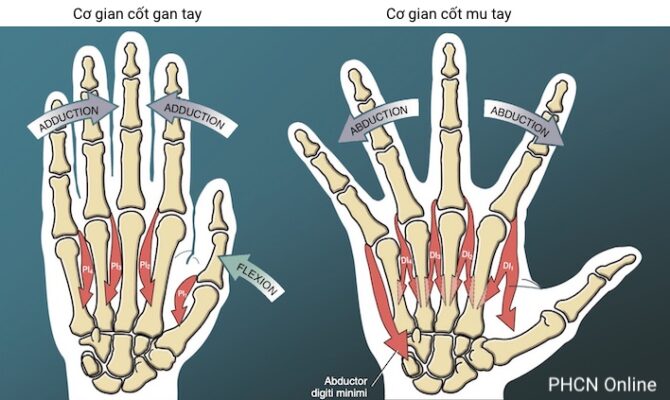 - Dạng ngón 2, 3, 4 là do cơ gian cốt mu tay.