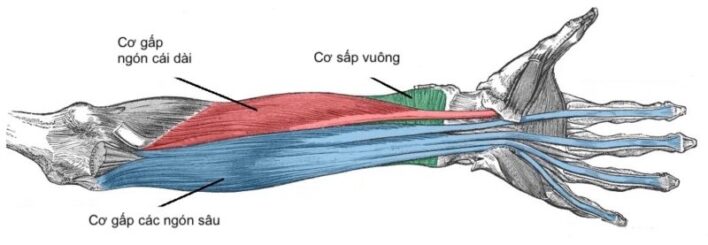- Cơ gấp các ngón nông: Gấp đốt giữa các ngón 2-5, phụ giúp gấp đốt gần và gấp cổ tay.
