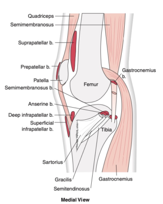 Để tạo thuận sự vận động của khớp và các gân cơ, xung quanh gối có nhiều túi thanh dịch, như túi thanh dịch các cơ chân ngỗng, túi thanh dịch trên xương bánh chè, trước xương bánh chè, dưới xương bánh chè nông và sâu, túi thanh dịch ở hố khoeo…
