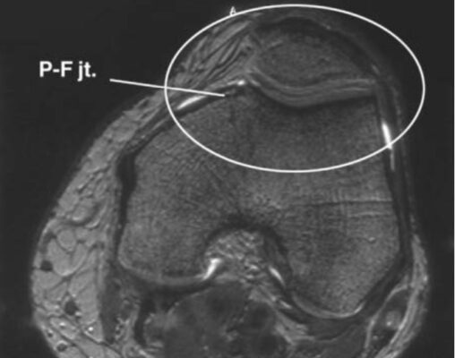 Khớp giữa xương bánh chè với rãnh ròng rọc của xương đùi.