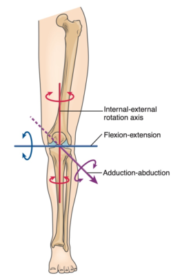 - Tư thế chuỗi đóng (chịu trọng lượng), xương đùi lăn ra trước trên xương chày và xoay ngoài và dạng so với xương chày.
