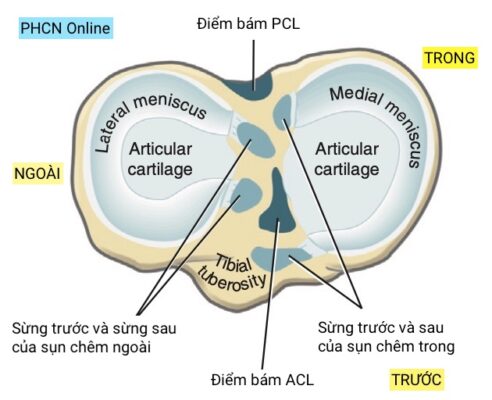 - Sụn chêm ngoài truyền tải khoảng 70% lực nén trong khoang ngoài của khớp gối.