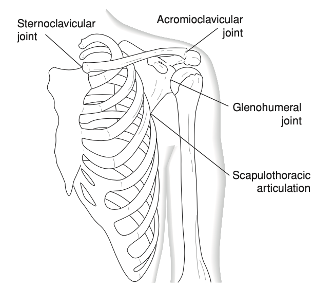 - Là một khớp sinh lý giữa bả vai và lồng ngực sau: xương bả vai nằm trên hai cơ: răng trước (serratus anterior) và cơ dưới vai (subscapularis), bên dưới hai cơ này là thành ngực