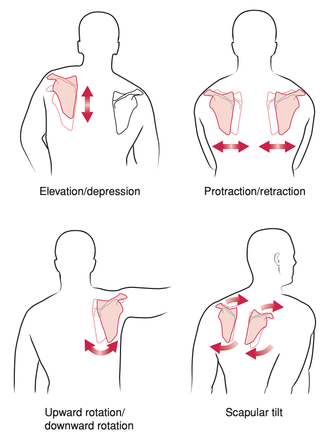 - Vận động xương bả vai phụ thuộc vào vận động ở khớp ức đòn và khớp cùng vai đòn. Vận động xương bả vai có thể xảy ra ở ba hướng