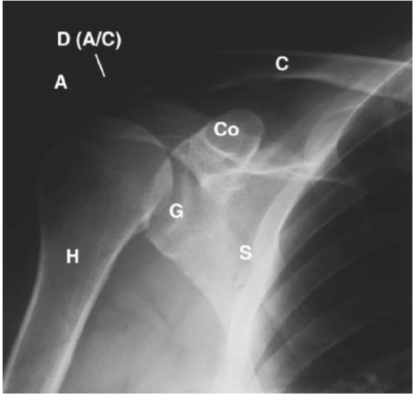 - D = Acromioclavicular joint: Khớp cùng vai-đòn