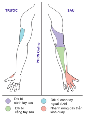 - Dây thần kinh bì cẳng tay sau– Chi phối cho một dải da ở giữa mặt sau cẳng tay.