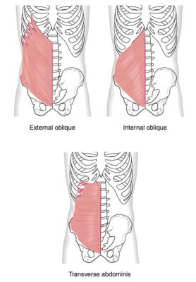 - Nằm sâu nhất trong các cơ bụng là cơ ngang bụng, chạy theo hướng ngang.