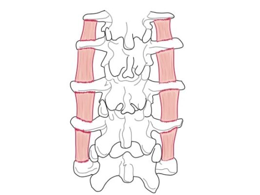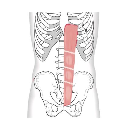 | Mỏm ngang đến xương sườn, hoặc xương sườn đến xương sườn | Duỗi, nghiêng bên | Cơ chậu sườn/iliocostalis (ES) |
