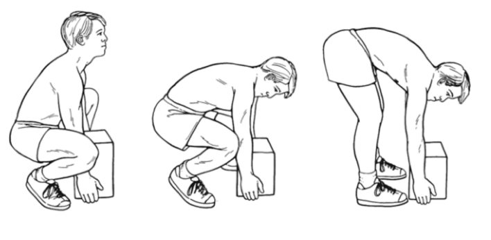 Khi các đốt sống thắt lưng ngừng tham gia vào gập thân, vận động vẫn tiếp tục do nghiêng chậu ra trước. Các cơ sau mông, hamstring và cơ mông lớn co ly tâm để kiểm soát độ nghiêng về phía trước của xương chậu. Khi thân gập nhiều hơn, hoạt động của cơ dựng sống giảm dần và trở nên hoàn toàn không hoạt động ở tư thế gập thân hoàn toàn.