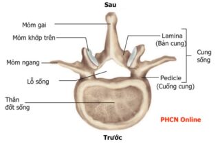 - I: Mỏm gai, mỏm ngang và xương sườn từ xương chẩm đến xương cùng và xương chậu