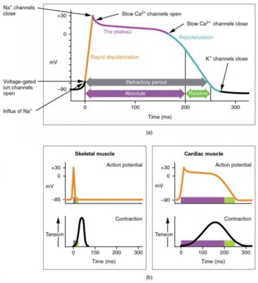 - Thời kỳ trơ tuyệt đối: Kéo dài gần suốt thời gian co cơ (do pha cao nguyên). Điều này ngăn cản hiện tượng cộng hưởng kích thích (tetanization), đảm bảo tim luôn có giai đoạn giãn để đổ đầy máu.