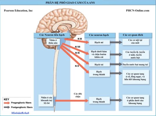 Hệ phó giao cảm thay đổi hoạt tính các cấu trúc được phân bố bởi các dây thần kinh sọ não và chậu