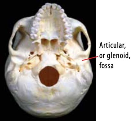 Xương thái dương bao gồm năm phần: phần trai, phần đá, lỗ tai trong, xương gò má và hố sọ giữa. Dây thần kinh mặt (điều khiển vận động các cơ mặt) và dây thần kinh tiền đình ốc tai (thăng bằng và thính giác) đều chạy dọc ống tai trong. Hõm khớp của xương thái dương (còn gọi là hõm hàm, mandibular fossa) nằm ở trước lỗ tai ngoài. Phần trước của hõm khớp gọi là củ khớp (articular tubercle) hoặc lồi khớp (articular eminence) – khi xương hàm dưới hạ xuống, chỏm lồi cầu sẽ nằm dưới điểm mốc này. Phần sau của hõm khớp là củ sau ổ chảo (postglenoid tubercle), ngay trước lỗ tai ngoài.