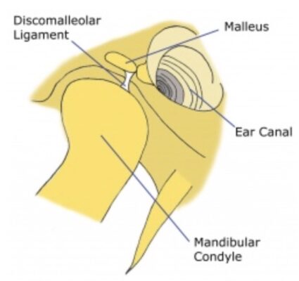 Bao gồm dây chằng đĩa- xương búa (DML, discomalleolar ligament), phát xuất từ xương búa (malleus, một trong các xương nhỏ của tai giữa) và chạy đến bờ trong mô sau đĩa của khớp thái dương hàm, và dây chằng búa trước (AML, anterior malleolar ligament), phát xuất từ xương búa và kết nối với lưỡi của xương hàm dưới qua dây chằng bướm hàm. Các dây chằng tai- hàm dưới có thể liên quan đến chứng ù tai và các triệu chứng khác của tai liên quan đến rối loạn khớp thái dương hàm.