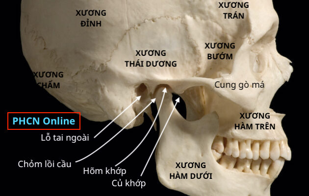Khớp thái dương hàm được cấu tạo bởi chỏm lồi cầu của xương hàm dưới và hõm khớp (hoặc ổ chảo) của xương thái dương, ở hai bên.