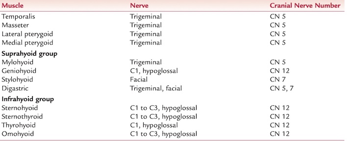 - Bụng trước: Dây thần kinh sọ 5 (thần kinh sinh ba), dây thần kinh hàm móng (mylohyoid).