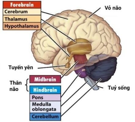 Các vùng của não lúc trưởng thành (từ dưới lên):