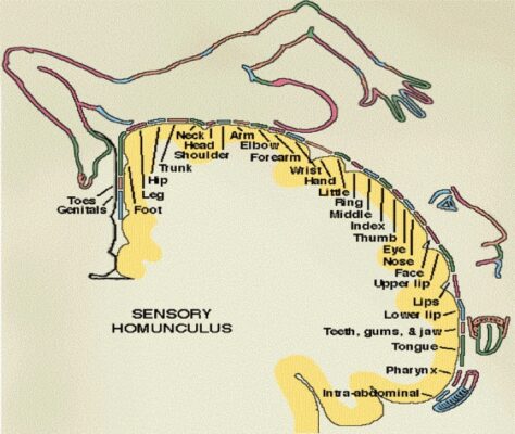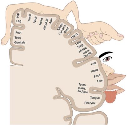 Các phần của thùy đỉnh giữa của bán cầu ưu thế có liên quan đến các khả năng như tính toán, viết, định hướng trái phải và nhận biết ngón tay.