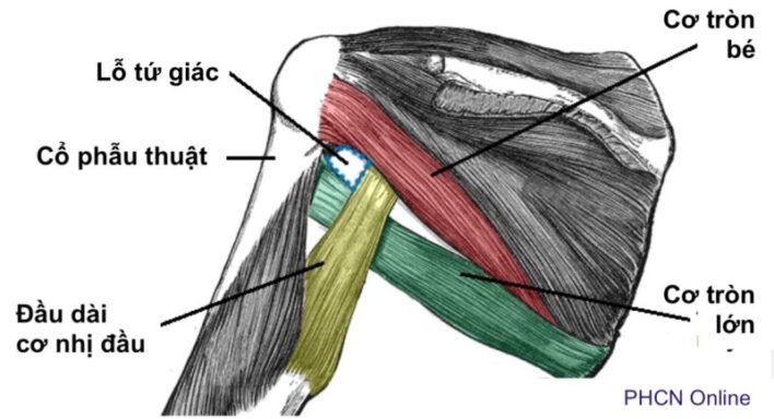Lỗ (khoang) tứ giác (Quadrangular Space): là một khoảng trống trong các cơ của vùng bả vai sau. Đó là con đường để các cấu trúc mạch máu thần kinh di chuyển từ nách ra phía sau vai và cánh tay. Nó được giới hạn bởi: