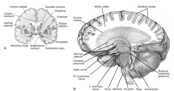 Các cấu trúc dưới vỏ nằm sâu trong não và bao gồm bao trong, hạch nền và hệ viền. Những cấu trúc này được trình bày ngắn gọn nhấn mạnh vai trò của chúng với chức năng vận động.
