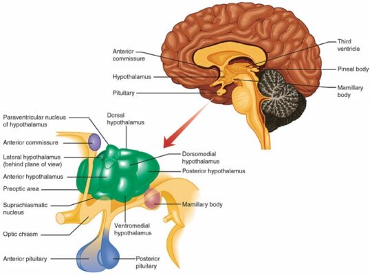 Vùng dưới đồi là một nhóm các nhân nằm ở đáy não, bên dưới đồi thị. Vùng dưới đồi điều chỉnh cân bằng nội môi (homeostasis), nghĩa là duy trì môi trường bên trong cân bằng. Cấu trúc này chủ yếu tham gia vào các chức năng tự động, bao gồm điều hòa đói, khát, tiêu hóa, nhiệt độ cơ thể, huyết áp, hoạt động tình dục và chu kỳ ngủ-thức. Vùng dưới đồi chịu trách nhiệm tích hợp các chức năng của cả hệ thống nội tiết và hệ thần kinh tự chủ (ANS) thông qua điều hoà tuyến yên và giải phóng các hormone.