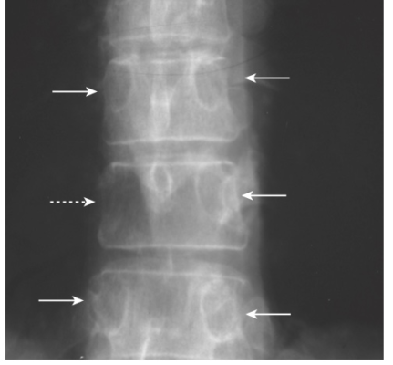 Sau đây là những dấu hiệu liên quan đến giảm mật độ xương toàn thể: