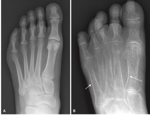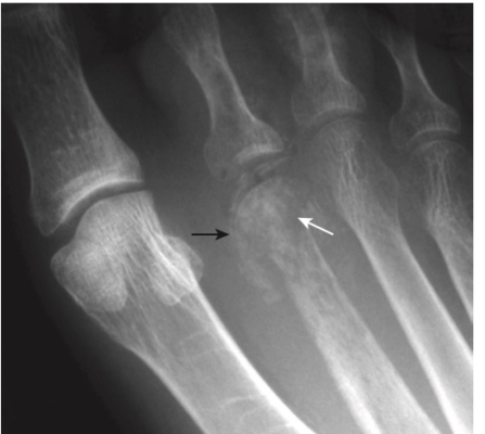 - Các thay đổi viêm kèm theo nhiễm trùng có thể tạo ra sưng mô mềm và loãng xương khu trú.