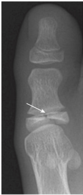 - Loại chấn thương này có thể là nguyên nhân của thoái hóa khớp thứ phát sau này, và có thể dẫn đến sự hợp nhất (dính) không đối xứng và sớm của bản tăng trưởng, dẫn đến biến dạng xương (Hình 8). Cần nhận biết sớm để điều trị kịp thời.