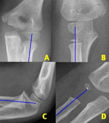 - Gãy xương loại IV có tiên lượng kém hơn so với các gãy Salter-Harris khác (tức là đóng sớm và có thể không đối xứng của bản sụn tăng trưởng, đặc biệt là ở xương chi dưới có thể dẫn đến sự chênh lệch về chiều dài chi, biến dạng gập góc và thoái hóa khớp thứ phát) (Hình 9).