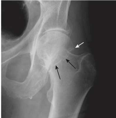 - Chỏm xương đùi trượt xuống dưới, vào trong và ra sau so với cổ của xương đùi (Hình 6).