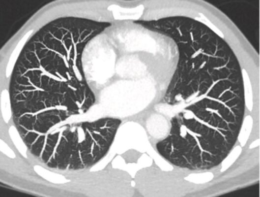 - Các phế quản hầu như không thể nhìn thấy được trên phim chụp X quang phổi bình thường vì bình thường chúng có thành rất mỏng, chứa không khí và được bao quanh bởi không khí.