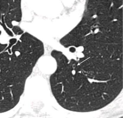 - Các phế quản và tiểu phế quản cũng có thể nhìn thấy được, và theo quy luật, các phế quản thường nhỏ hơn các động mạch phổi đi kèm (Hình 13).