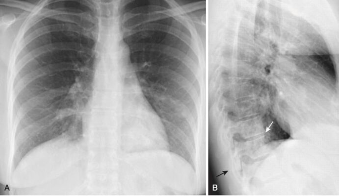 - Đừng quên quan sát cột sống ngực khi đánh giá X quang phổi nghiêng để tìm các dấu hiệu có giá trị về các bệnh lý hệ thống.