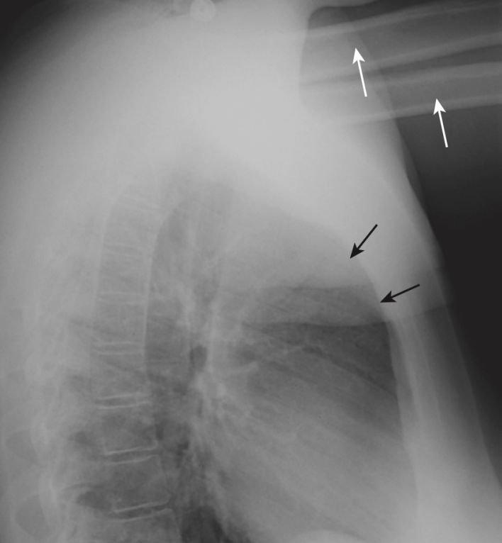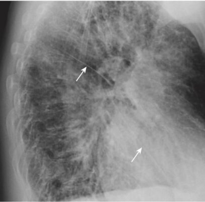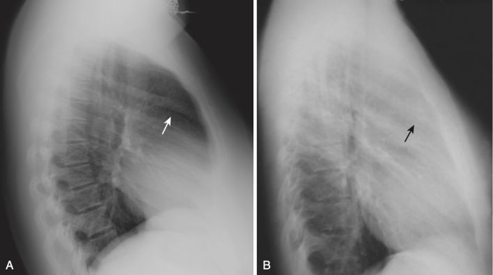 - Phim X-quang ngực nghiêng trái (với mặt trái của bệnh nhân áp vào máy nhận) có giá trị chẩn đoán cao nhưng đôi khi bị người mới bắt đầu bỏ qua vì họ không quen với những dấu hiệu có thể nhìn thấy được trong hình chiếu đó.