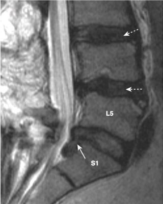 - Chỉ có khoảng 2% bệnh nhân bị đau thắt lưng cấp tính bị thoát vị đĩa đệm. Ở vùng thắt lưng, thoát vị đĩa đệm có thể dẫn đến đau lưng và đau dây thần kinh tọa, trong khi thoát vị đĩa đệm cột sống cổ có thể gây ra bệnh lý rễ và bệnh lý tủy. MRI là thăm dò lựa chọn để đánh giá thoát vị đĩa đệm.