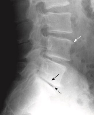 - Ở cột sống thắt lưng, các đĩa đệm tăng dần chiều cao theo từng khoảng gian đốt kế tiếp nhau, ngoại trừ L5 – S1, có thể bằng hoặc nhỏ hơn một chút so với chiều cao của L4 – L5 trên phim X quang thường quy.