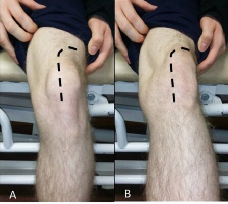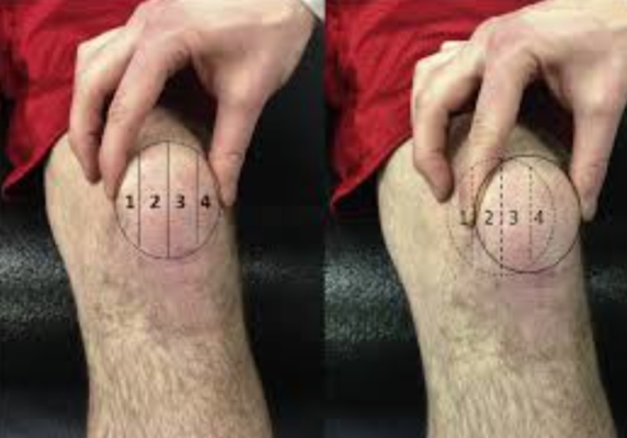 Đo lường sự dịch chuyển của xương bánh chè (bao nhiêu phần tư, đường giữa xương bánh chè là 0) khi trượt ra ngoài/vào trong, so với bên lành.