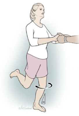 Ép vẹo ngoài ở tư thế duỗi và sau đó gấp gối 30 độ.