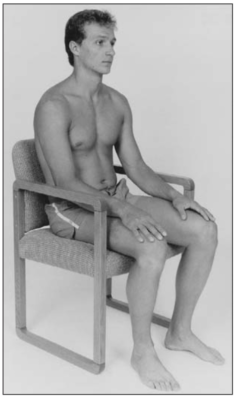 Ngồi hoặc nằm ngửa với háng gập và gối gập 90 độ, bàn chân đặt lên bàn khám