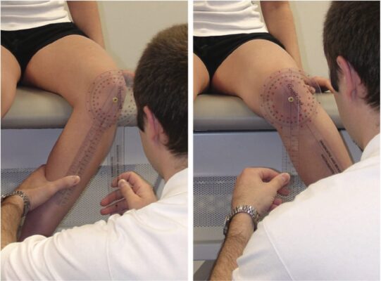 Có thể sử dụng thước đo góc để đo tầm vận động nếu cần thiết.