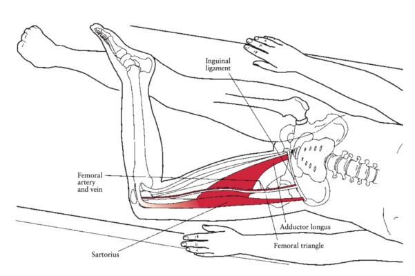 Nằm sâu bên trong, sờ phía trước, ở phía ngoài và dưới nơi giao nhau giữa động mạch đùi và cung bẹn.