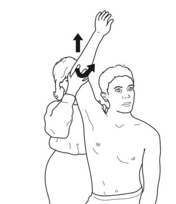 - Tương tự, bệnh nhân quay mặt nhìn sang vai đang được đánh giá. Sau đó, yêu cầu bệnh nhân duỗi đầu ra sau trong khi người khám xoay ngoài và duỗi tay bệnh nhân. Yêu cầu bệnh nhân hít sâu và nín thở (Valsalva).