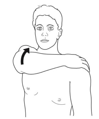 - Đưa tay bệnh nhân gập ra trước 90 độ và khép cánh tay chéo qua thân mình.