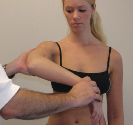 - Bệnh nhân ép bụng với gan bàn tay, giữ vai ở tư thế xoay trong. Nếu khuỷu tay đưa ra sau lưng (không giữ ở phía trước thân).