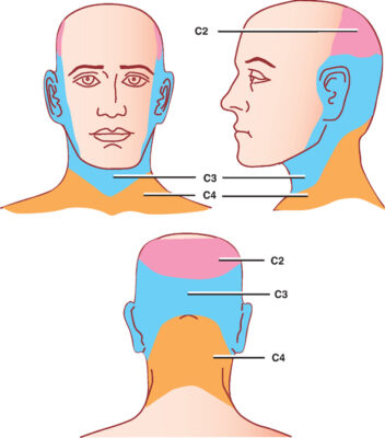 Khoanh da (dermatomes) cảm giác của C2, C3, và C4 là vùng phía sau đầu và cổ. Bởi vì những rễ này không có khoanh cơ (myotome) rõ ràng, chẩn đoán bệnh lý rễ cổ trên thường dựa vào các bất thường ở khoanh da này.